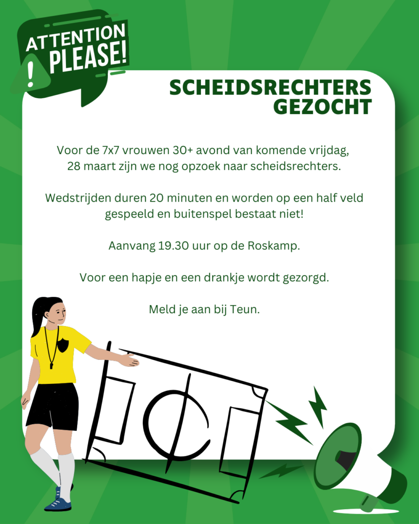 Wij zijn met ingang van het seizoen 2025-2026 op zoek naar een enthousiaste hoofdtrainer voor het eerste elftal, die in het bezit is van de vereiste diploma’s voor een elftal dat zondag vierde klasse speelt.