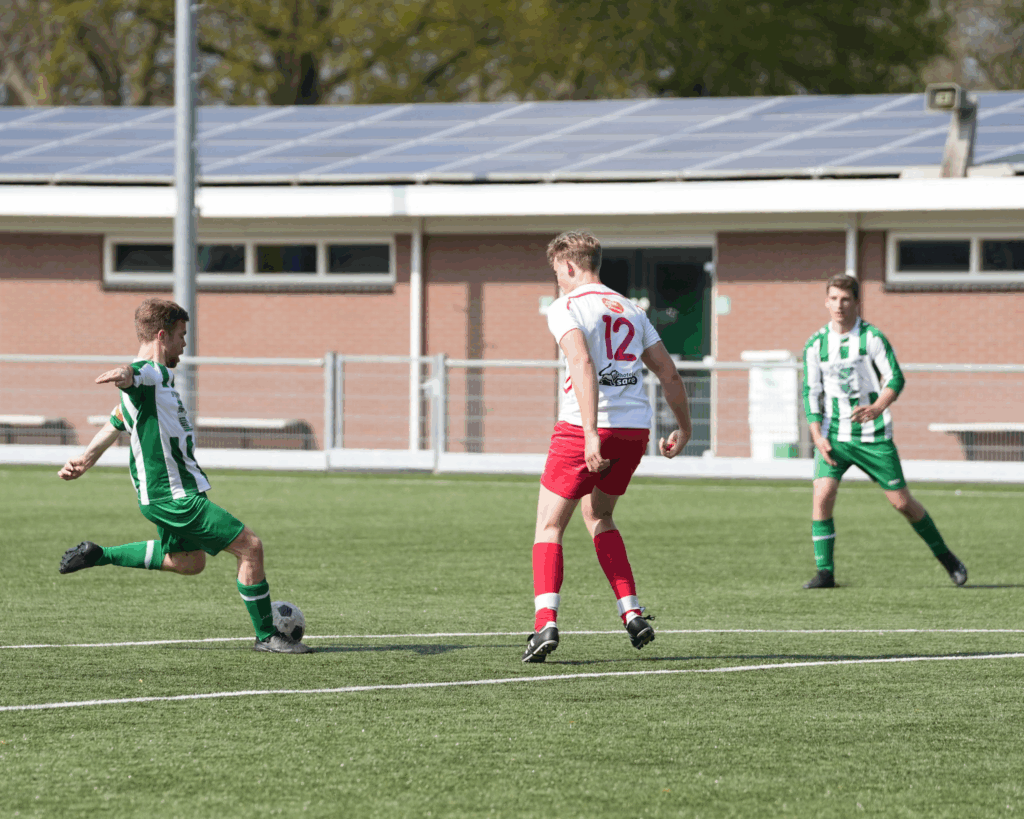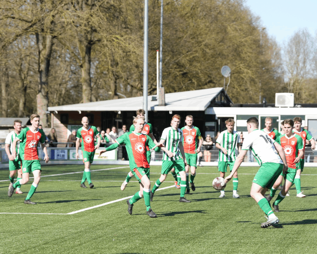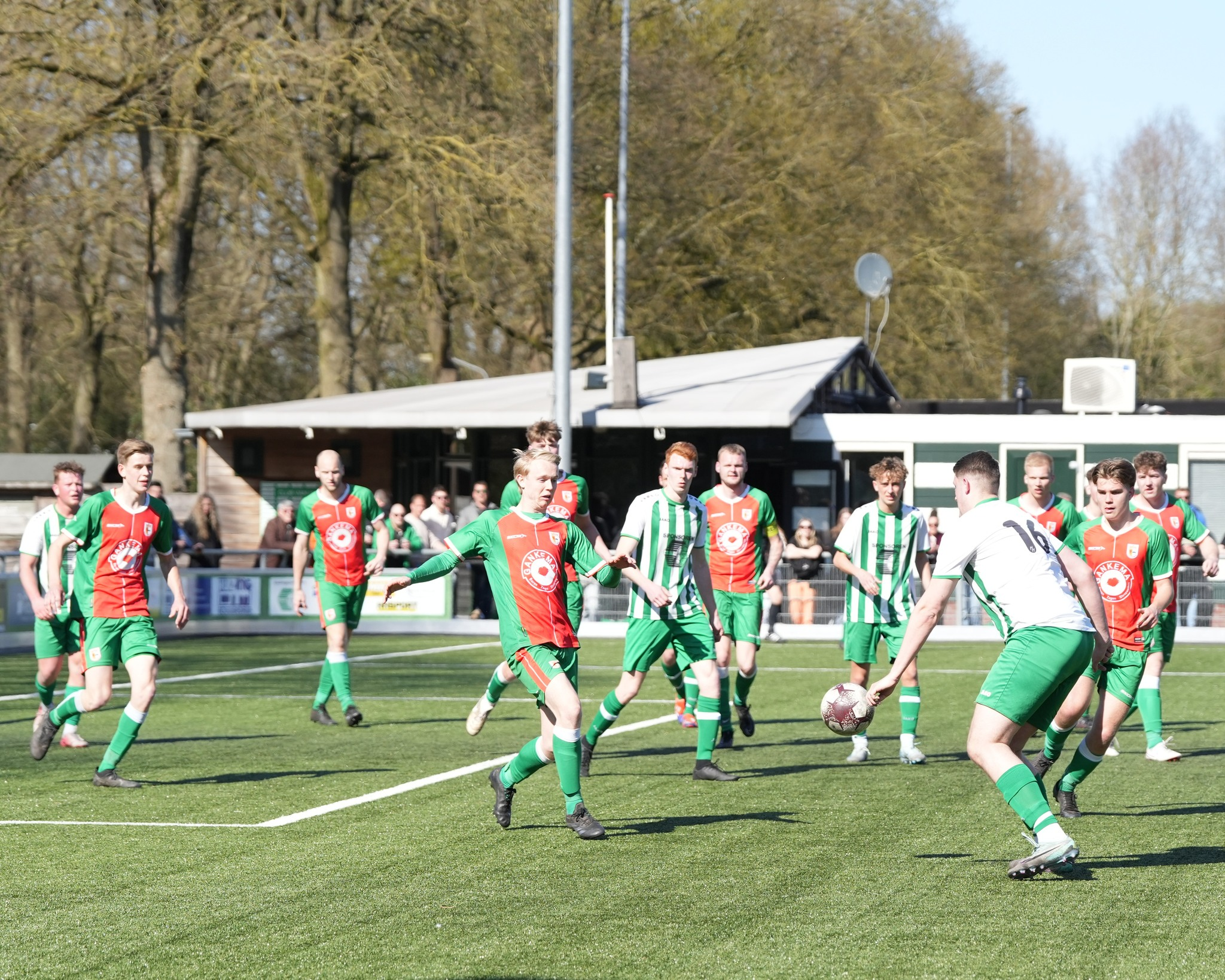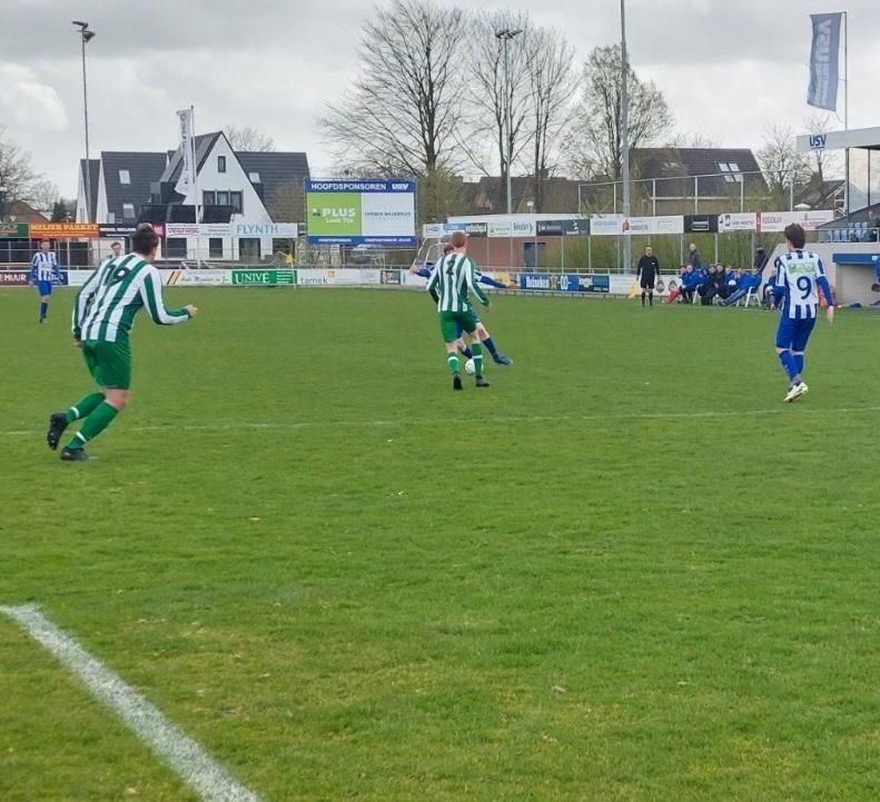 De eerste helft bleef levendig: twee scherpe corners van Thijs zorgden voor gevaar, en Wijster kreeg nog een kansje via een korte kaats door het centrum, maar het schot vloog hoog over. In blessuretijd van de eerste helft volgde nog een moment van dreiging van Finn na een afgeslagen corner – zijn schot was te slap, zonde, daar had meer ingezeten.