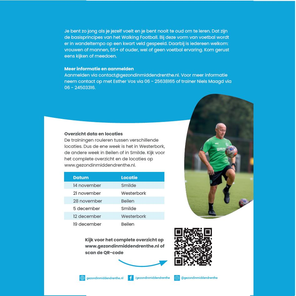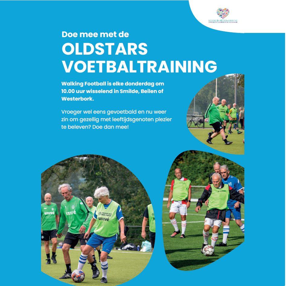 Na de 3 succesvolle clinics van OldStars Voetbal is het gelukt om te starten met een Midden-Drenthe team dat afwisselend in Smilde, Beilen en Westerbork traint. De training is sinds begin oktober op de donderdagochtend om 10 uur. Trainer is Niels Maagd.