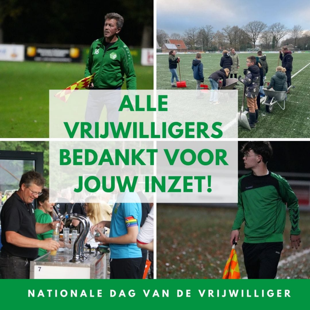 Vandaag is het de ‘Nationale dag van de Vrijwilliger’ en staan we even stil bij iedereen die zich inzet voor de vereniging. Onze vrijwilligers maken het verschil, dankzij jullie kunnen er wekelijks trainingen worden gegeven en wedstrijden worden gespeeld. Door jullie inzet kan de kantine na de wedstrijden open blijven en menig gezellig feestje worden gevierd. Via deze weg iedereen bedankt!