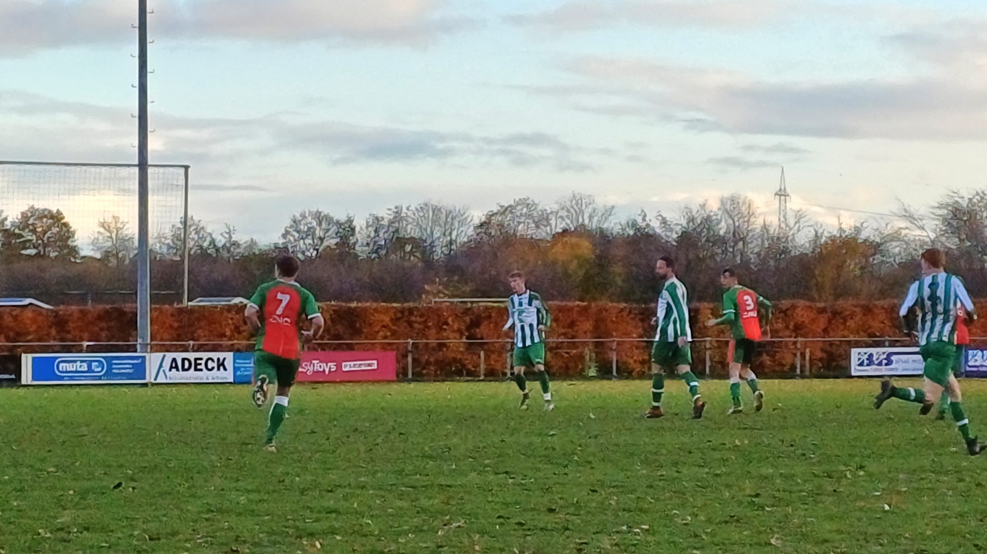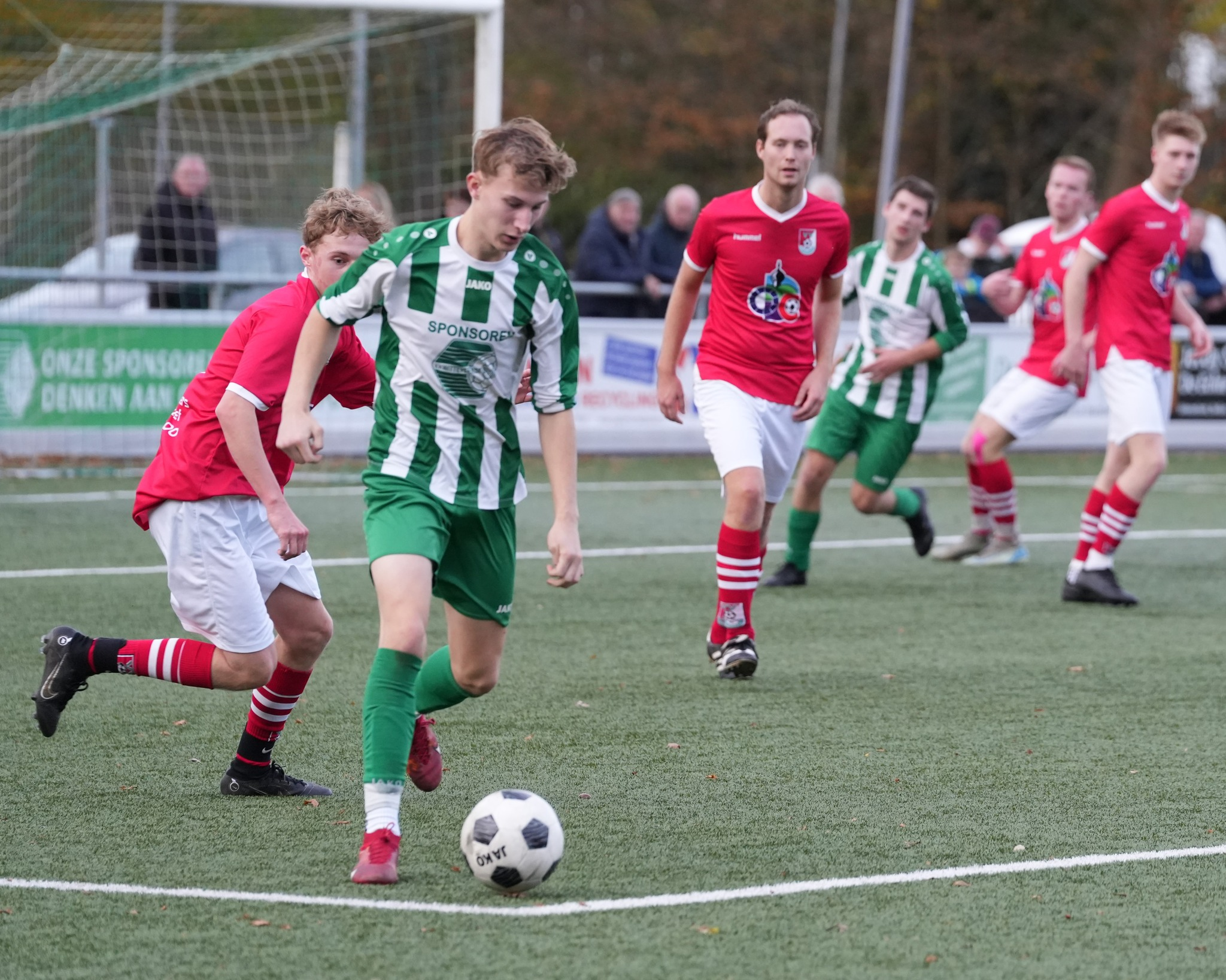 De beste man bood direct z’n excuses aan voor deze verkeerde beslissing. De vrije bal werd hoog overgeschoten door Thijs.